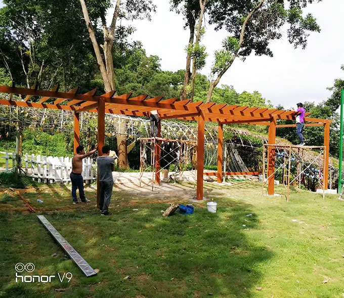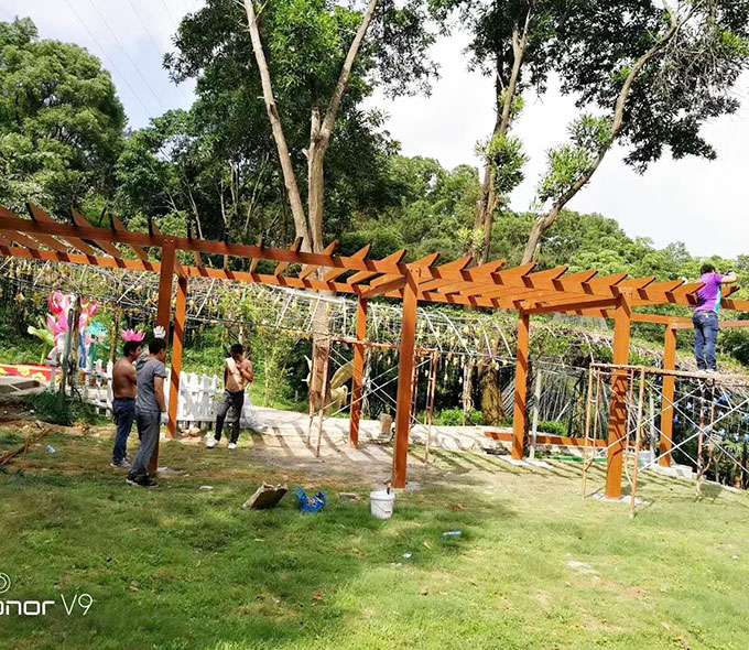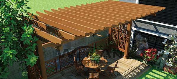 石家庄浩瀚水果蔬菜供应有限公司花架系列产品是采用高强度铝合金为原材料,经酸洗铬化,氧化电泳或静电喷涂,木纹转印处理后,精密定制设计,保障安装。它具有防水防潮,不膨胀不变形,防腐蚀,具有逼真的木质感。成为别墅住宅及市政园林等建筑美丽的风景,还能代替廊子提供遮阴纳凉功能,同时还能用花架作园林大门使用。
