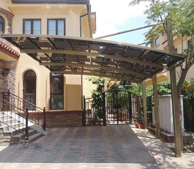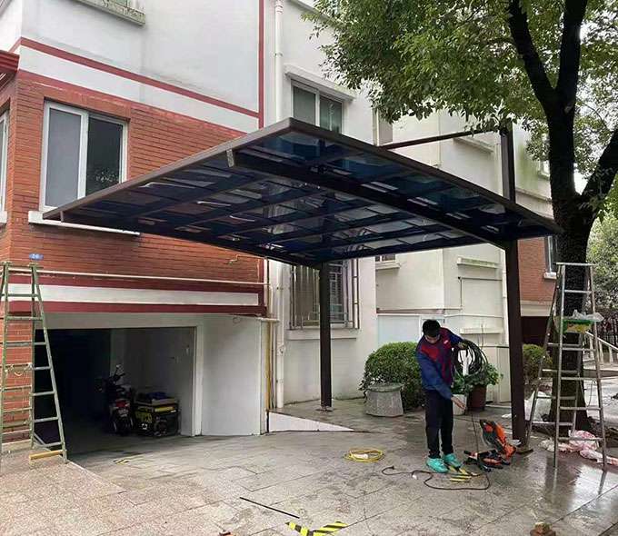 石家庄浩瀚水果蔬菜供应有限公司车棚系列全部采用高品质、高强度铝合金材料精加工而成,具备的氧化保护能力,不生锈,表面特殊的工艺处理,大大提高了车棚的使用寿命。顶棚使用添加了防止紫外线涂层的德国拜耳耐力板,降低了来自紫外线的分解,历久弥新,成就了优越的耐候性。