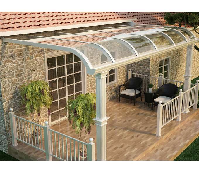 石家庄浩瀚水果蔬菜供应有限公司雨棚(A5款窗棚、露台棚)系列产品是高强度铝合金和聚碳酸酯板(耐力板)的结合。主体结构全部采用高品质、高强度铝合金材料精加工而成,具备的氧化保护能力,不生锈,表面特殊的工艺处理,大大提高了雨棚的使用寿命。顶棚耐力板的运用,能遮挡阳光中的有害紫外线对地板、墙壁、窗帘等损害;同时阻挡夏日毒辣的太阳,可以控制室内温度的上升,冷气效果也大幅度提高,从而达到节约能源的作用。